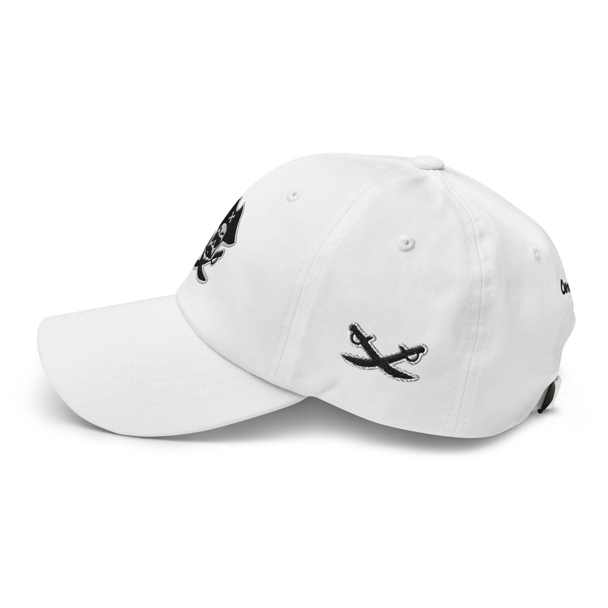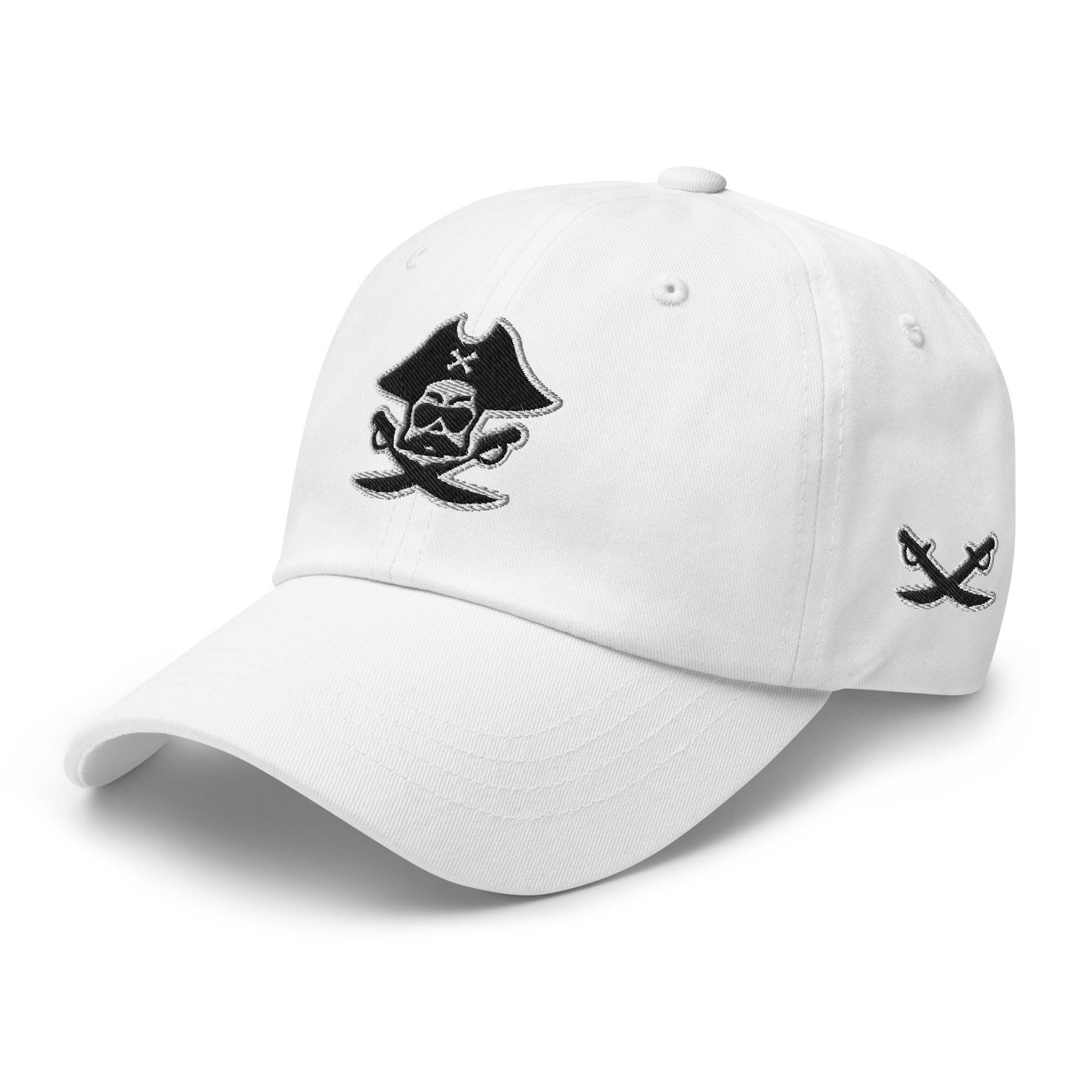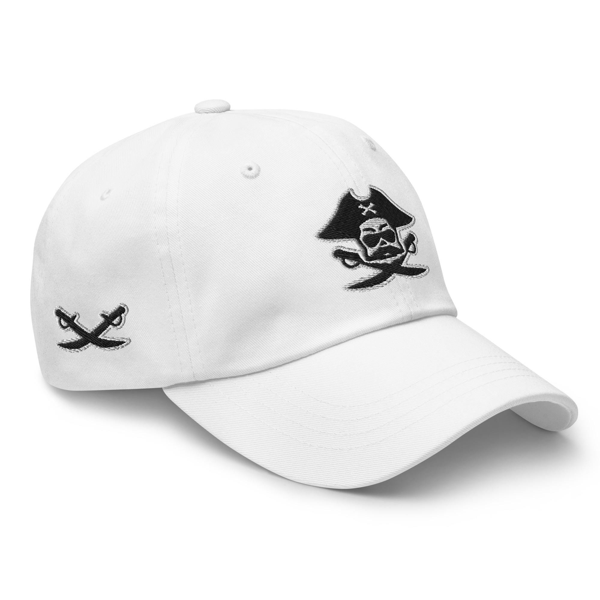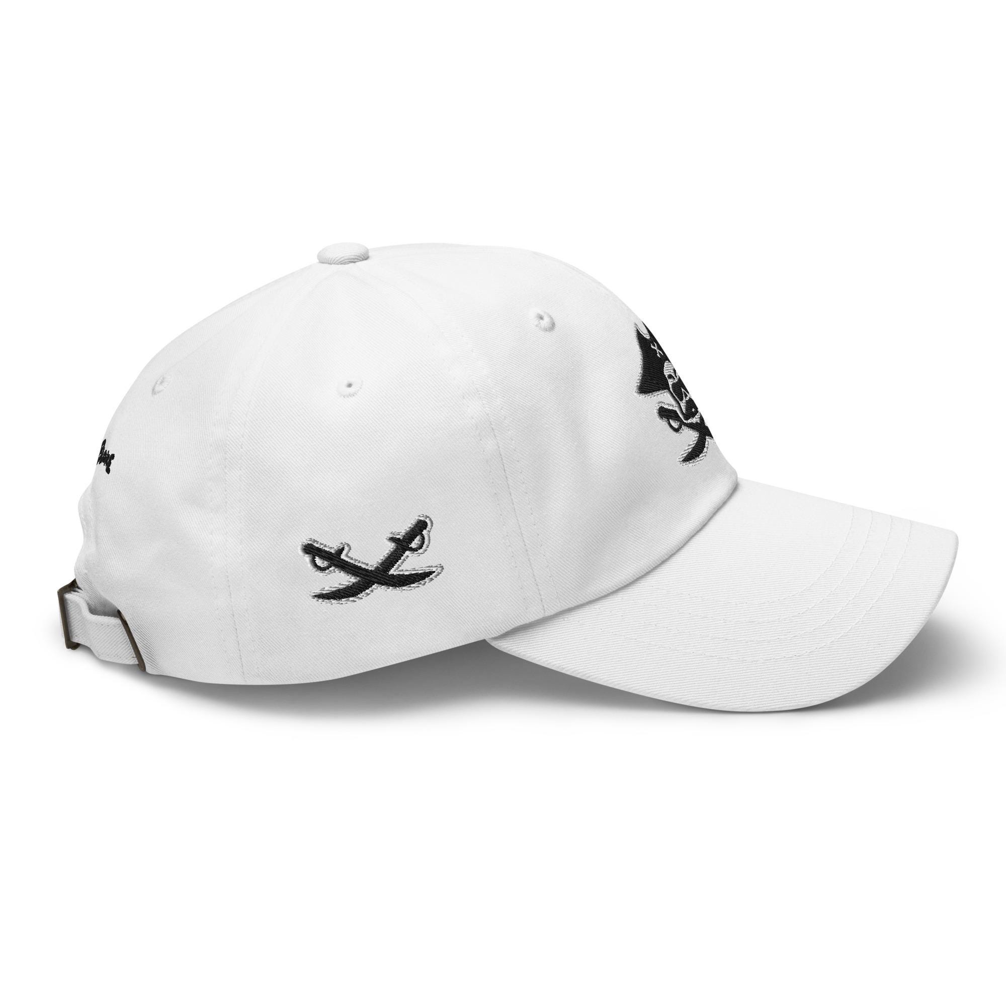Set sail in style with the CapitanBloke Pirate Dad Hat! White hat. Perfect for pirates at heart or anyone looking to add a fun, adventurous touch to their casual wardrobe. Crafted from 100% chino cotton twill, this unisex cap features a low profile with a curved visor, making it comfortable and versatile for everyday wear. The embroidered pirate skull adds a bold and playful statement, ideal for those who love a bit of nautical flair.