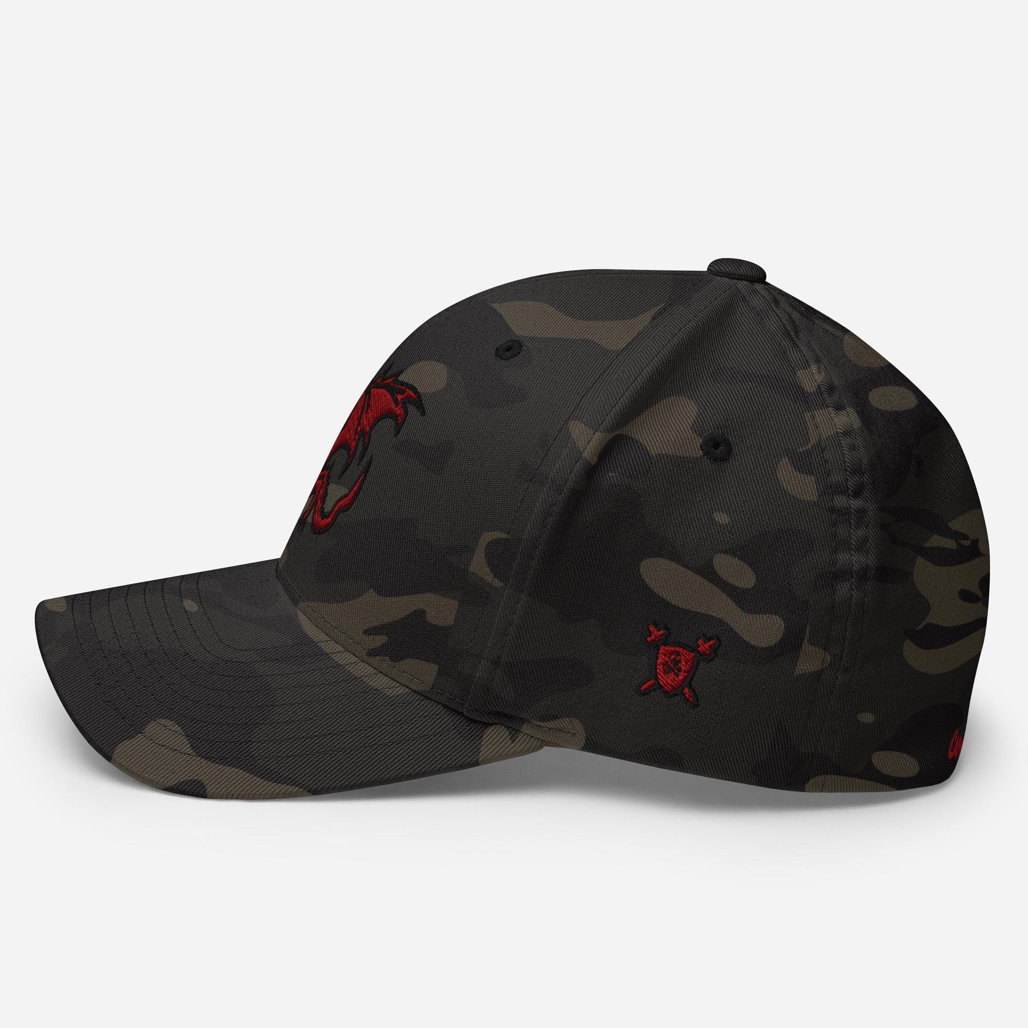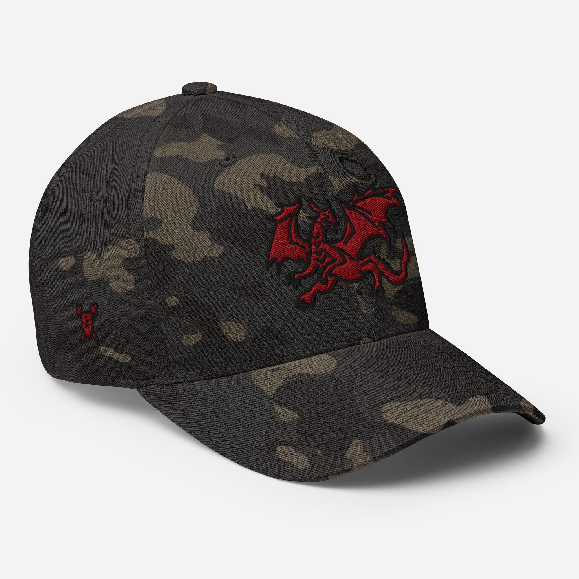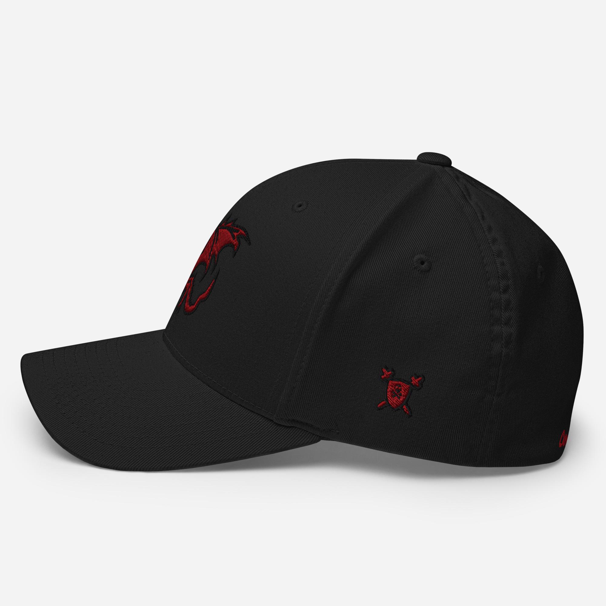 Elevate your casual style with the Dragon, Shield & Swords Embroidered Hat by CapitanBloke. This athletic cap features a bold, detailed embroidery of a fierce dragon, perfect for adding a touch of fantasy to your everyday look. Crafted with a durable stretch band, it offers a comfortable fit for head circumferences ranging from 22” to 23⅞” (55.9 cm to 60.6 cm).