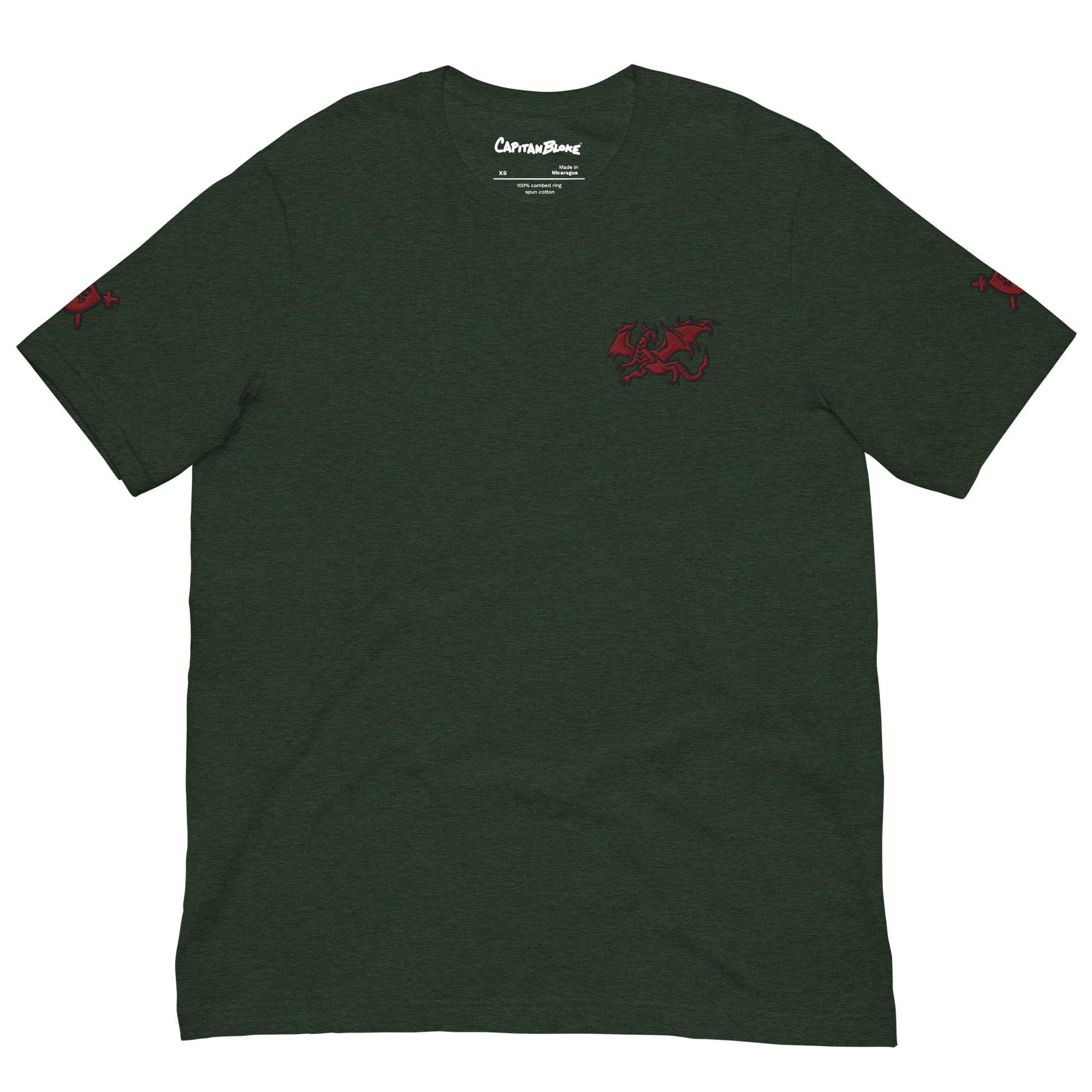 Unleash your inner hero with CapitanBloke's Dragon, Shield, and Swords Embroidered T-Shirt, perfect for fans of fantasy medieval style, gamers, and role-players alike. Crafted for comfort and designed to make a statement, this eye-catching tee features intricate embroidery of a fierce dragon alongside medieval-inspired shield and sword details, bringing your favorite fantasy universe to life.