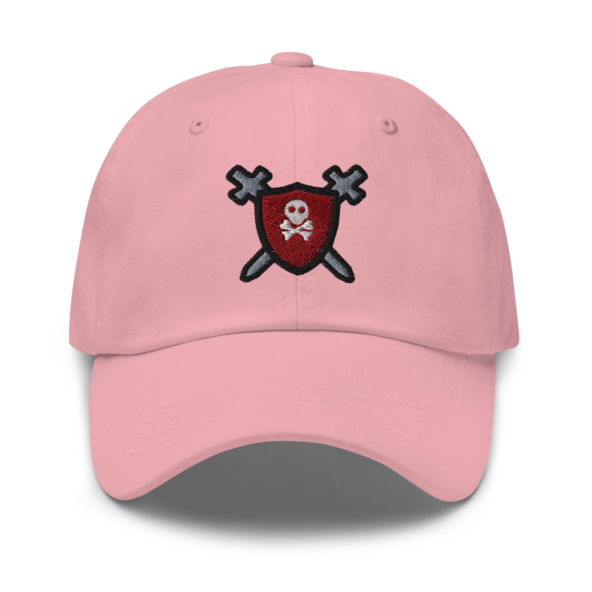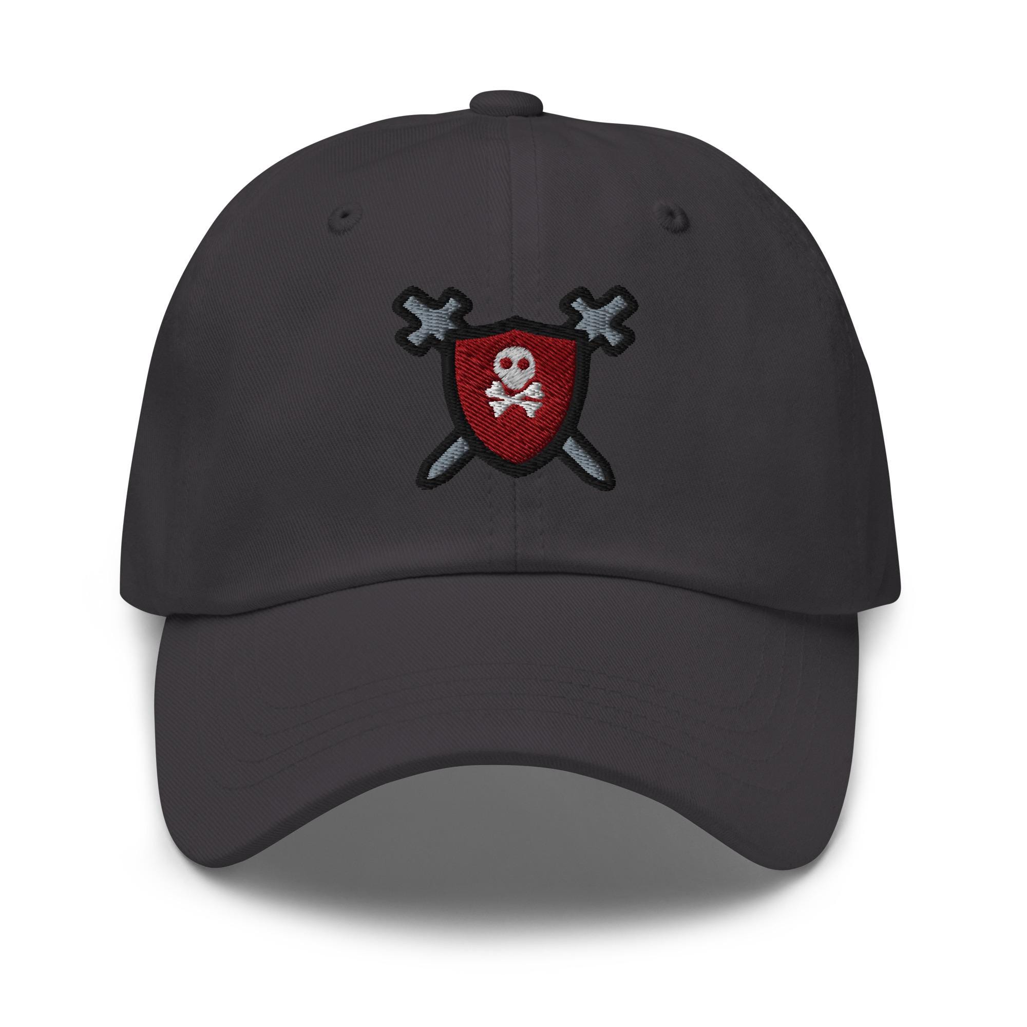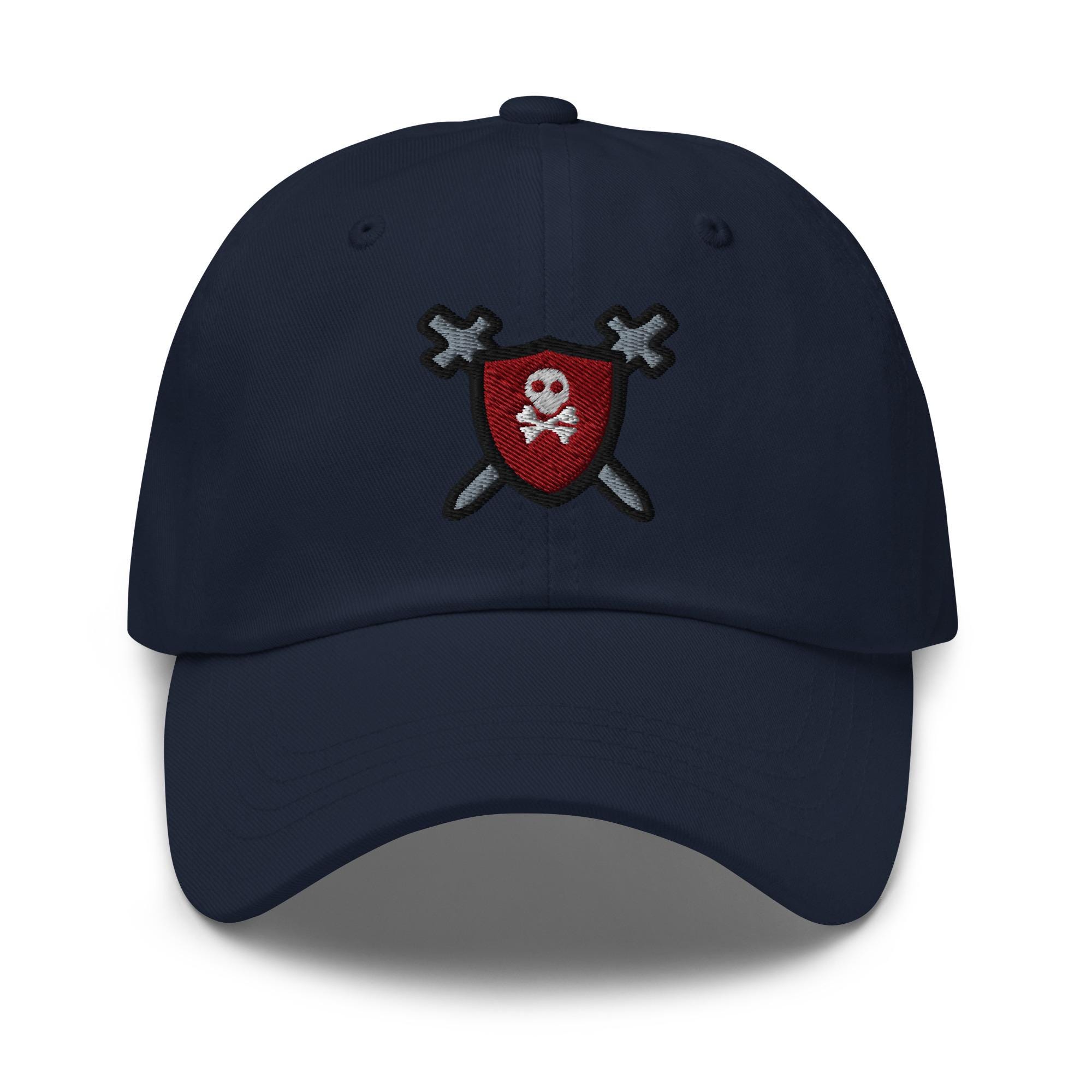 Elevate your casual style with the Shield & Swords Embroidered Adjustable Strap Dad Hat, a versatile low profile unstructured cotton twill baseball cap designed for comfort and flair. Perfect for everyday wear, this cap features a striking embroidered emblem of a shield with crossed swords and a skull, adding a touch of bold personality to your look. Whether you're hitting the outdoors, running errands, or just want to showcase your unique style, this dad hat is an excellent choice.