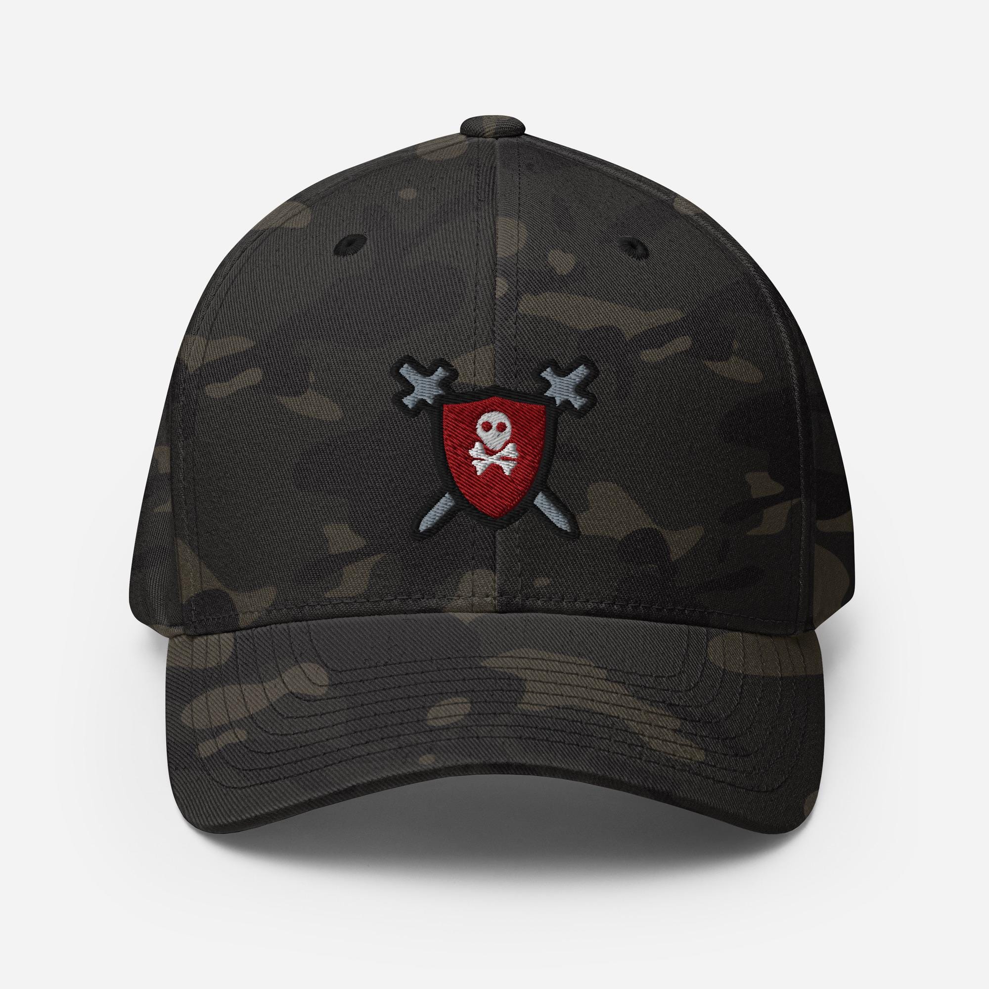 Elevate your athletic style with the CapitanBloke Shield & Swords Embroidered Stretch Band Hat, a versatile camo baseball cap designed for comfort and bold flair. Perfect for casual outings, sports events, or everyday wear, this hat combines functional design with eye-catching embroidery that showcases your adventurous spirit.