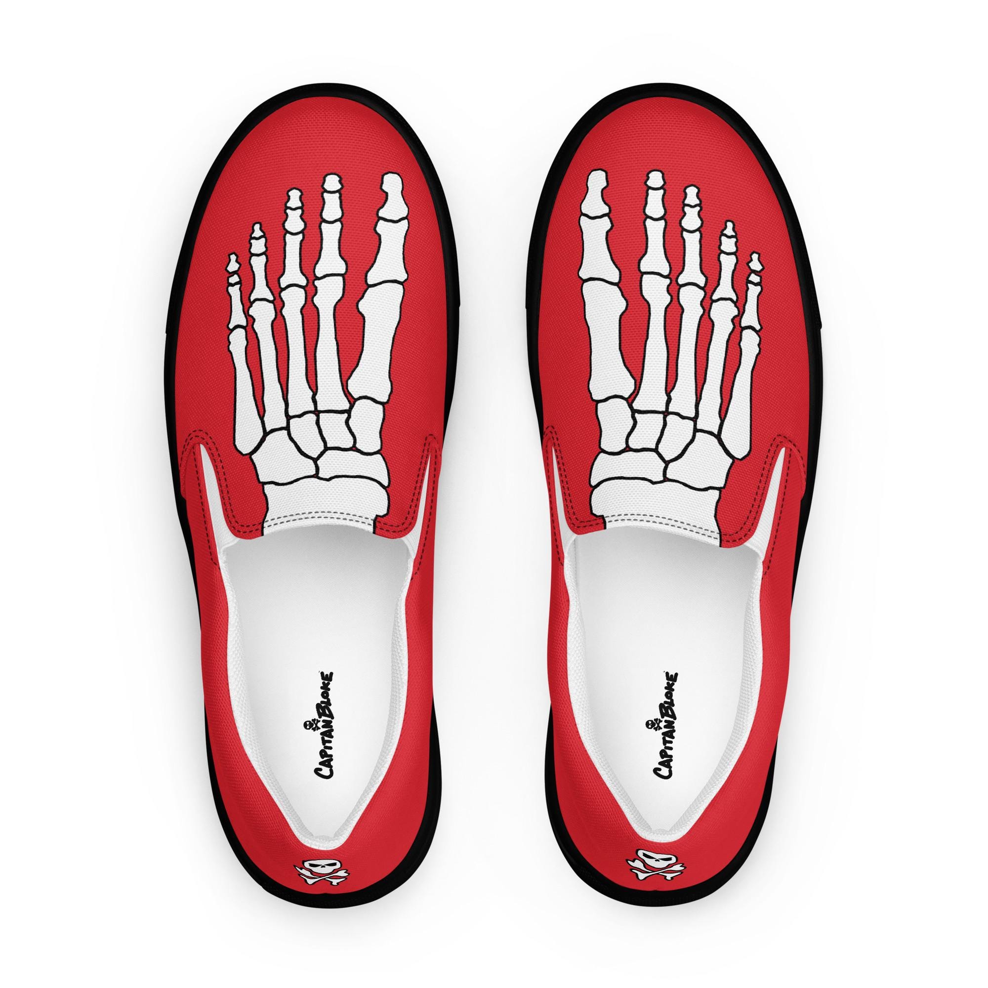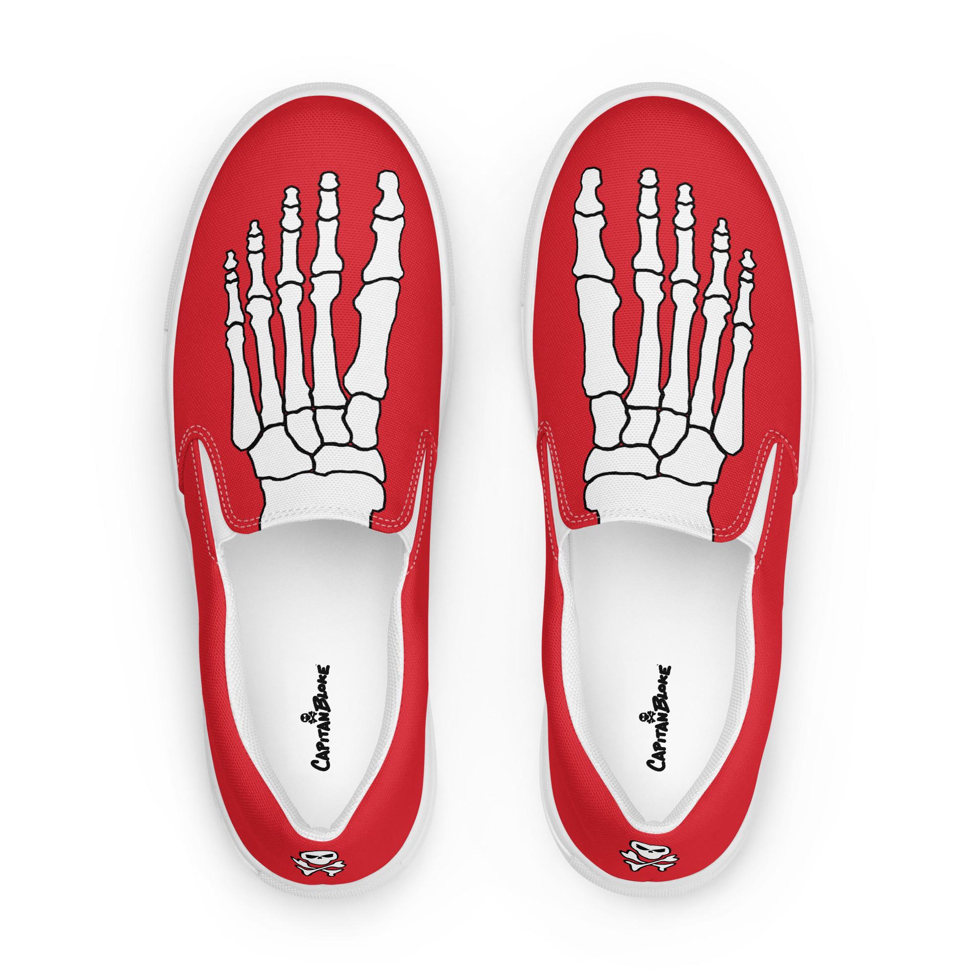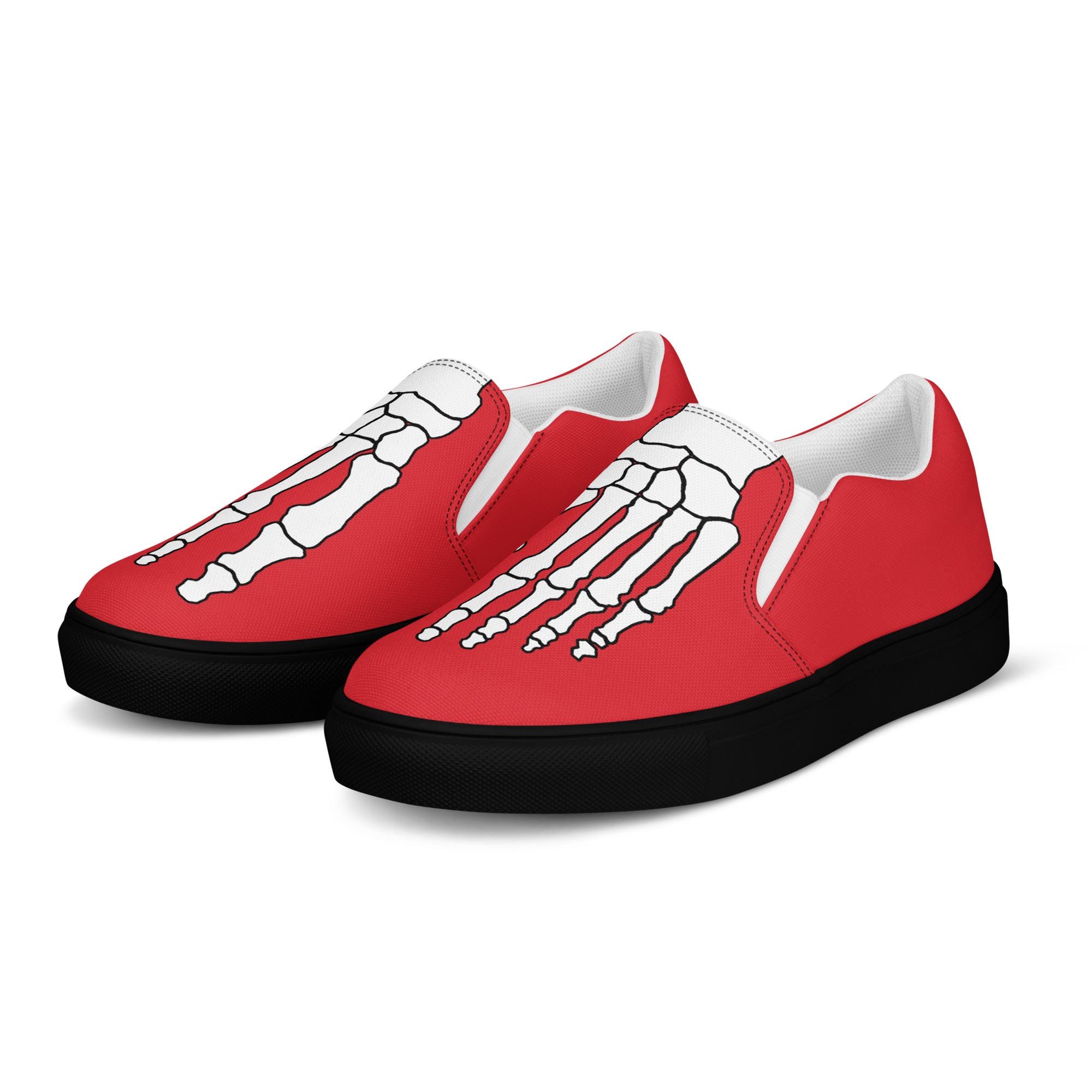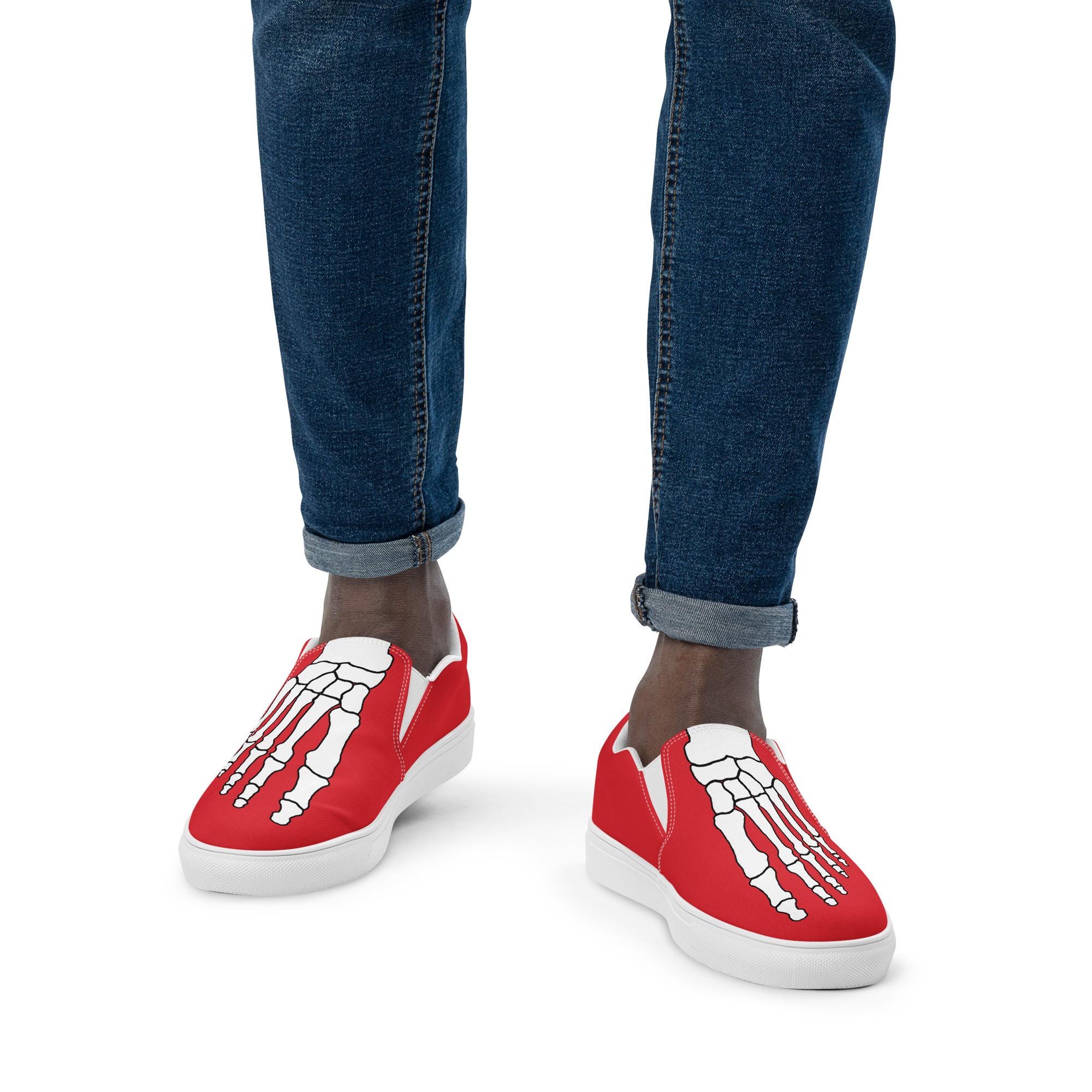 Step into style and comfort with the White Skeleton Feet Men's Slip-On Canvas Shoes by CapitanBloke. Perfect for those who want to make a bold statement, these eye-catching shoes feature a striking skeleton foot design that adds a touch of edgy personality to any outfit. Crafted with care and creativity, they’re ideal for casual outings, creative events, or just expressing your unique style.