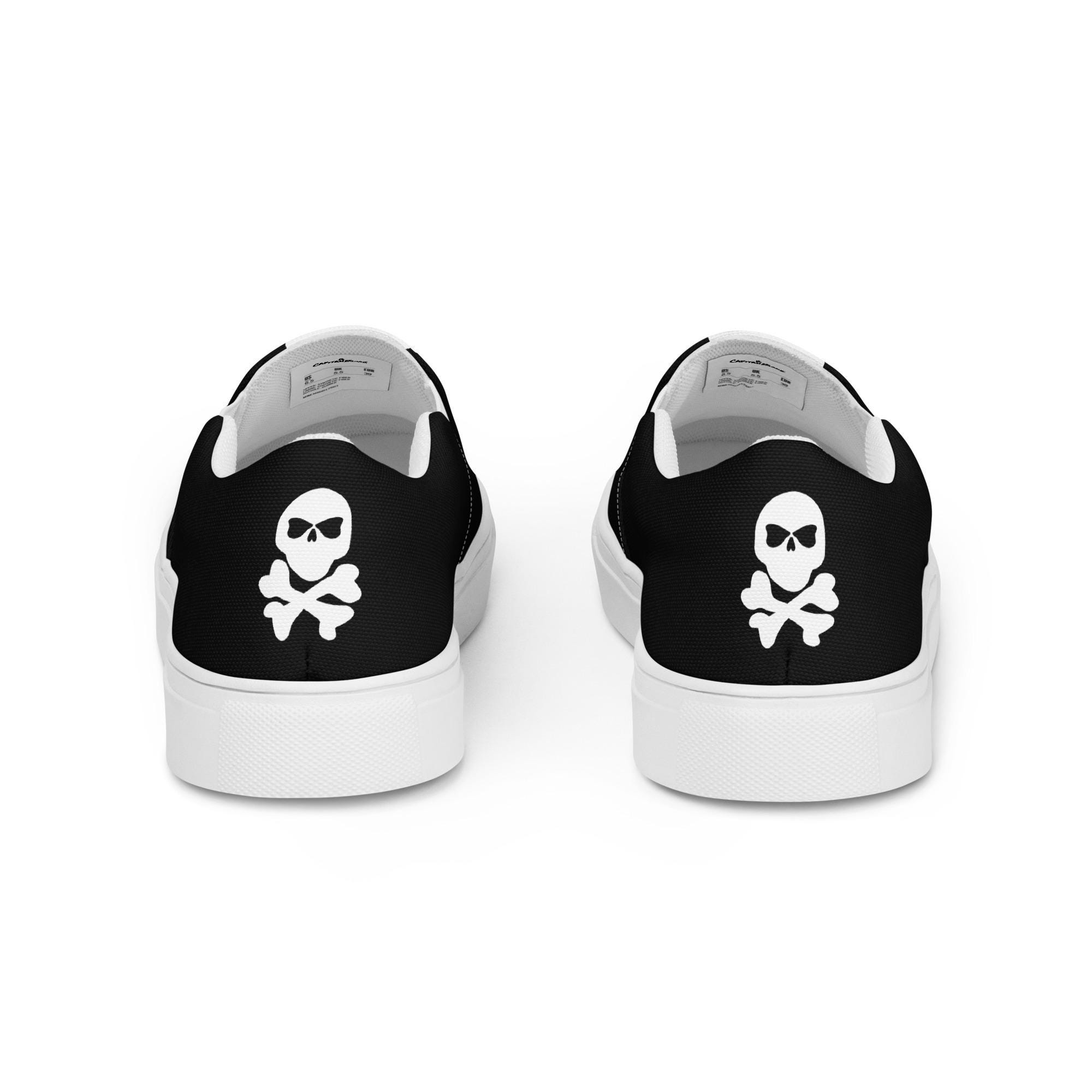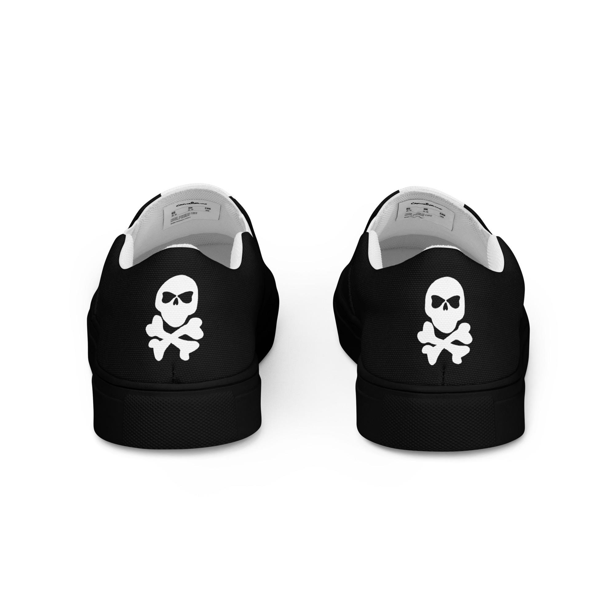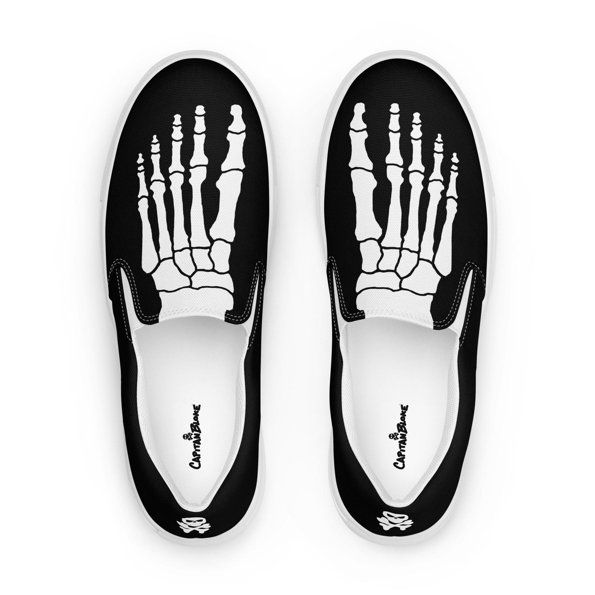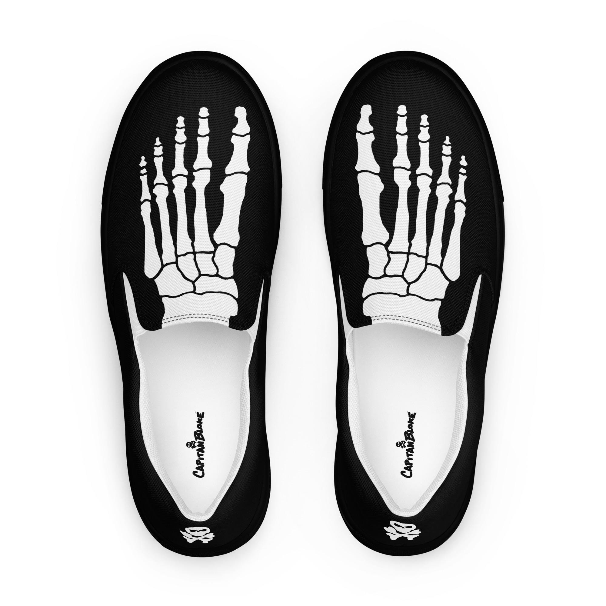Step into spooky style with the White Skeleton Feet Men's Slip-On Canvas Shoes by CapitanBloke! These eye-catching shoes are perfect for those who love to make a statement while staying comfortable all day long. Featuring a bold skeleton foot print on a crisp white canvas, they add a playful yet edgy touch to any outfit.